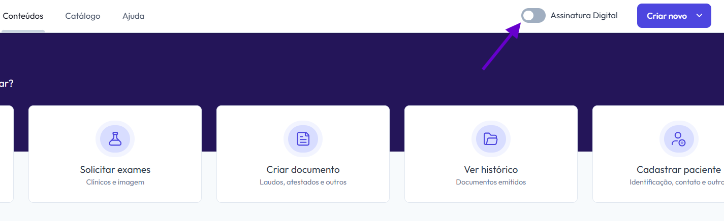 Para ativar a sua assinatura, primeiramente você precisará clicar em "Assinatura Digital";