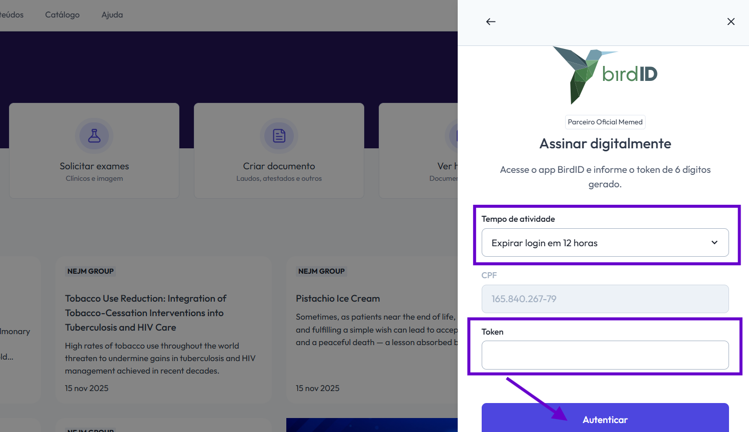 Vale ressaltar: O período estipulado de expiração (até 12 horas) é destinado apenas para o tempo de uso do mesmo token, não possui nenhuma relação com a validade da receita.