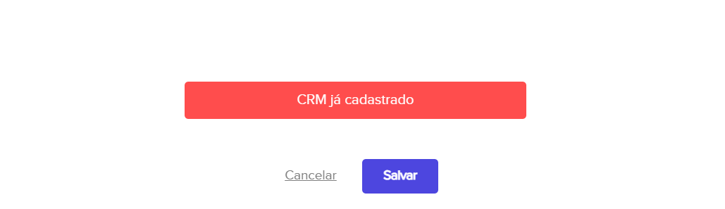 Ao tentar editar o CRM e ele já estar cadastrado na plataforma ao clicar em salvar uma mensagem “CRM ja cadastrado”será exibida na tela e a edição não será concluida.