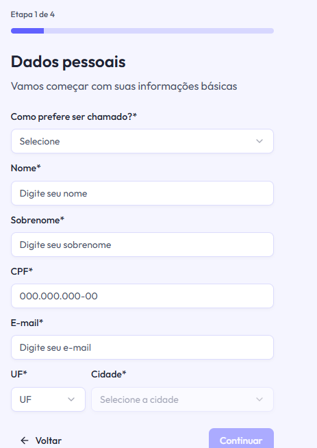 Segunda etapa: Dados pessoais