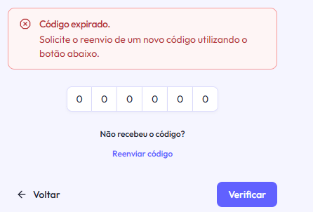 -O código é válido por alguns minutos, caso apareça a mensagem abaixo informando que o código está expirado, clique em (Reenviar código).