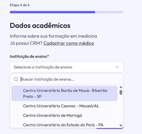 - Se você já concluiu a faculdade e obteve seu CRM, veja aqui como atualizar seu cadastro para liberar todas as funcionalidades da plataforma!